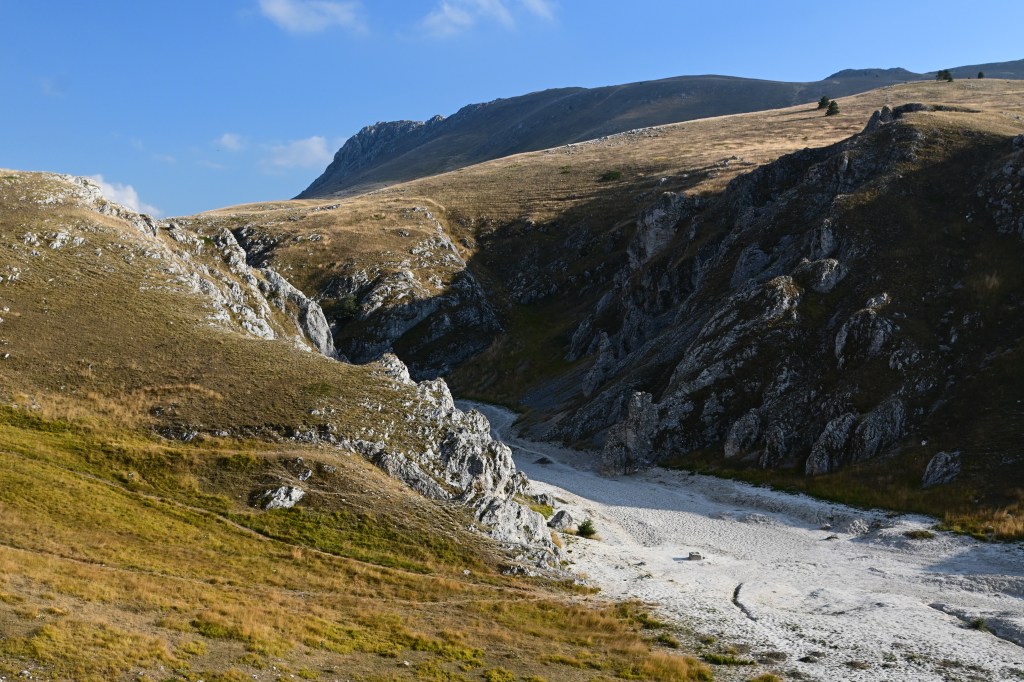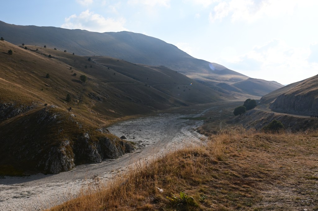 Inizio con una fotografia dell’ultimo giorno. Per un amante delle montagne come mi ritengo di essere, non potevo scegliere immagine più iconica: il Corno Grande del Gran Sasso d’Italia, visto dalla piana di Campo Imperatore. Al mattino, la luce lo colpisce frontalmente e lo rende più prominente di quanto già non sia. Le vette appenniniche, solitamente stondate e relativamente basse rispetto alle Alpi, in Abruzzo si trasformano in queste meraviglie. Su Instagram, qualche giorno scrissi: “Le Montagne non sono soltanto una risultanza geologica. Alcune di loro posseggono quarti di nobiltà. Sono Guardiani, Divinità, Sentinelle di Ere. Si stagliano in armonie impensabili e bellezza terribile.“